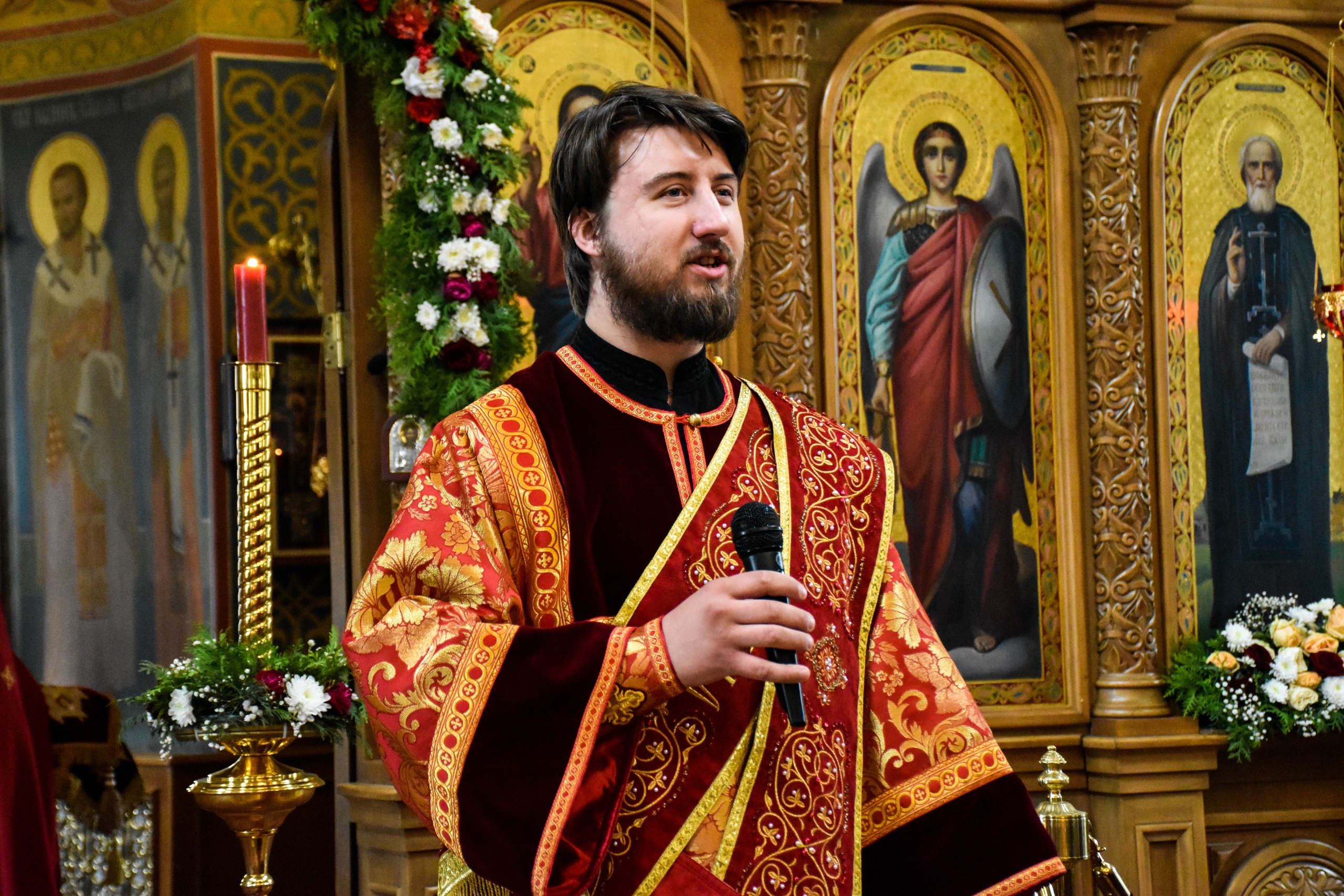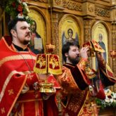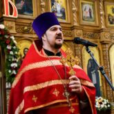 По запричастном стихе со словами проповеди к прихожанам обратился клирик храма диакон Александр Карнаух.