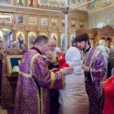 В Великий Четверг в храме во имя преподобного Сергия Радонежского совершалась Вечерня и Божественная Литургия свт. Василия Великого