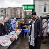 11 апреля в Великую Субботу, по окончании литургии настоятель храма во имя преподобного Сергия Радонежского протоиерей Роман Вылуск совершил традиционное освящение пасхальных куличей, яиц и брашна.