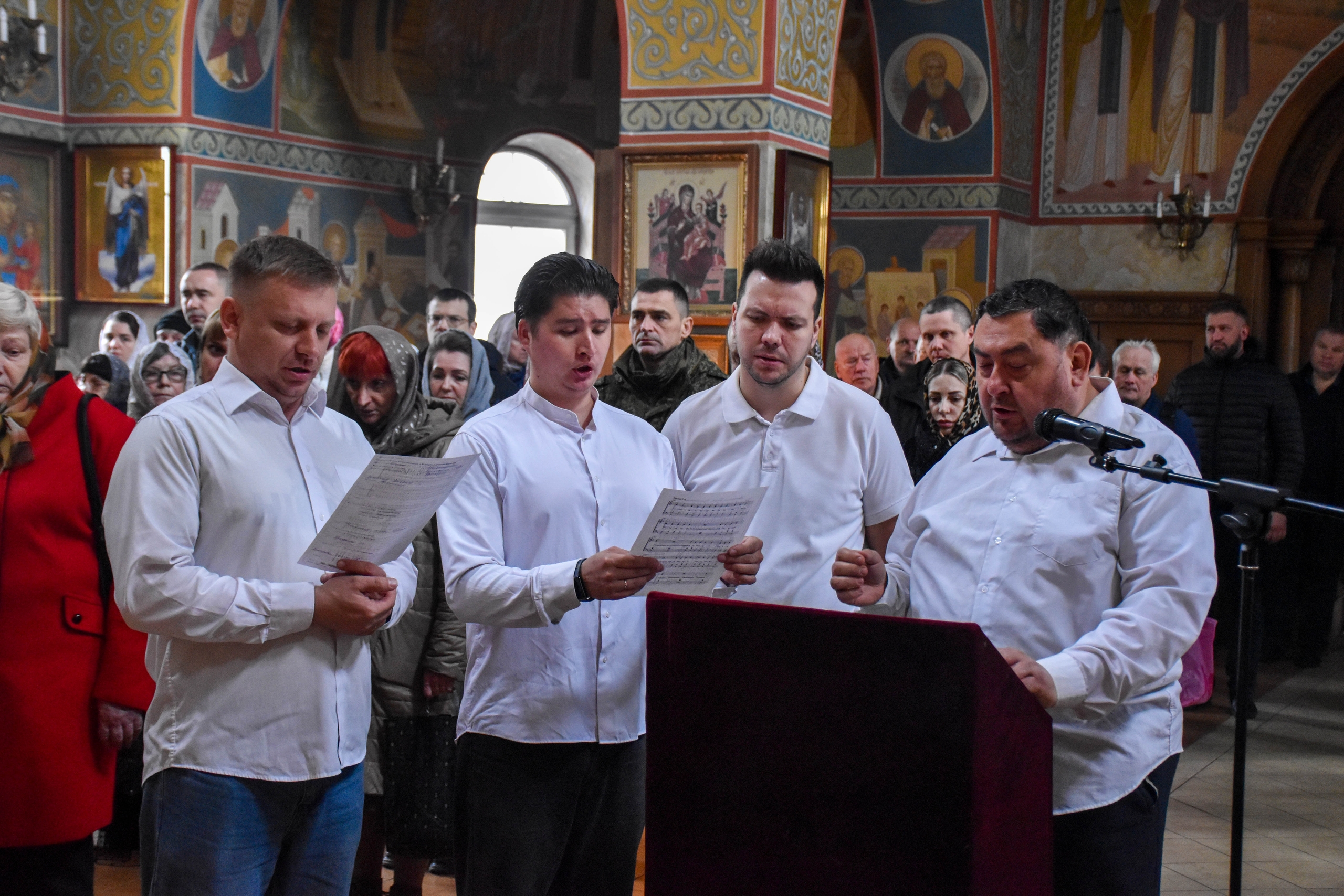 Богослужебные песнопения исполнил смешанный хор под управлением регента Алексея Завалишина.