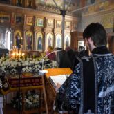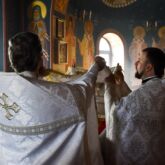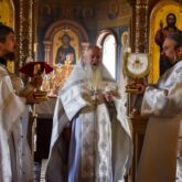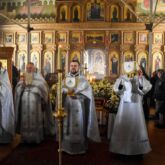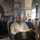 Богослужение возглавил настоятель храма священник Алексей Завогородний. Отцу Алексею сослужили клирики храма священник Сергий Левищев, священник Виктор Басов, диакон Виктор Кораблин и диакон Александр Карнаух.