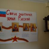 Особый интерес в экспозиции представляют замечательные иконы покровителей воинства, знамёна со священными изображениями и памятная доска с именами священнослужителей, погибших при исполнении пастырских обязанностей на поле брани. К числу необычных экспонатов тематического класса относятся два кованых изделия, которые были изготовлены из гильз боеприпасов, и символизируют стремление жителей новых регионов России к мирной жизни. Данные экспонаты были переданы воскресной школе советником директора Федеральной службы судебных приставов В. А. Шабалатовым.
