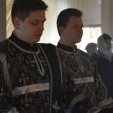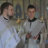 Да молчи́т вся́кая плоть челове́ча, и да стои́т со стра́хом и тре́петом, и ничто́же земно́е в себе́ да помышля́ет: Царь бо Ца́рствующих и Госпо́дь госпо́дствующих прихо́дит закла́тися и да́тися в снедь ве́рным. Предхо́дят же сему ли́цы А́нгельстии со вся́ким Нача́лом и Вла́стию, многоочи́тии Херуви́ми и шестокрила́тии Серафи́ми, ли́ца закрыва́юще и вопию́ще песнь: Аллилу́иа, Аллилу́иа, Аллилу́иа.