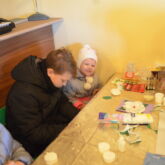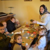Дети прихожан, под руководством матушки Ольги Филипповой изготовили симпатичные открытки, которые во время праздника подарили своим мамам и бабушкам, чем очень растрогали их.