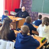 18 марта в МБОУ СОШ № 10 настоятель Никольского храма (мкр-на Никольское) протоиерей Олег Гребенкин и матушка Ольга Гребенкина провели уроки, посвященные Дню Православной Книги. Темой уроков стала юбилейная дата — 300-летие со дня рождения святителя Тихона Задонского. Священник посетил пятые классы, где рассказал ребятам о детстве святителя, о его непростой и подвижнической жизни, о делах милосердия и любви к ближним, о книгах духовных трудов, которые оставил после себя святой, а также ответил на вопросы учащихся. Матушка Ольга провела уроки в начальных классах, показала детям икону святителя Тихона, картины, описывающие его житие, и параллельно познакомила детей с жизнью святого, зачитала поучения святителя Тихона о молитве и необходимости постоянно сверять свои желания и мысли с заповедями Божиими.