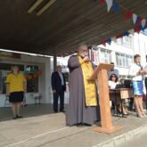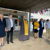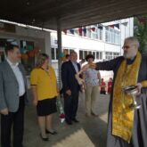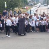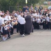 Настоятель Никольского храма (мкр-на Никольское) г.Воронежа протоиерей Олег Гребенкин посетил праздничную линейку, посвященную Дню знаний