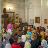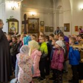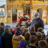 Учащимся было рассказано о внешнем и внутреннем устройстве храма, о церковной символике и священных предметах. Детям наглядно были показаны напрестольное Евангелие, священные сосуды и напрестольный Крест.